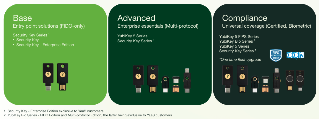 All YubiKeys are part of one or more product tiers associated with subscription program: