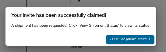 - Claimed - invite has been claimed by the recipient and a shipment request has been created.